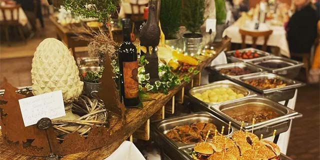 Gönnen Sie sich unser reichhaltiges Wildbuffet passend zur Jahreszeit und genießen Sie viele regionale Highlights. Sie erwartet u. a. Suppen, verschiedene Wildgerichte, saisonale Beilagen und Desserts zum Abschluss.